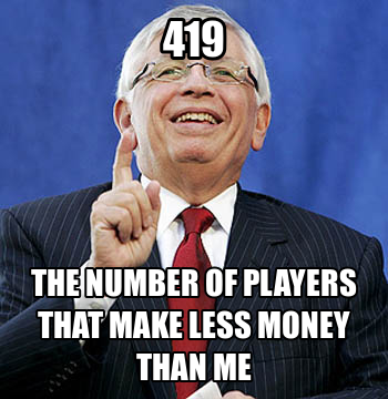 National Basketball Association (NBA) fans has often blamed executive decisions made by league commissioner David Stern, as the main catalyst for compromising the ideals of competition and fair play in the NBA. Such accusations include, draft rigging to suit teams with larger television markets, allowing player transactions to favour major city teams and refusing to compromise during negotiations talks by the players union for an increased salary, ultimately leading to the 2011 - 2012 NBA season lockout, cutting the season short by 16 games. More recently, Stern was accused of vetoing the trade of marquee of players and rigging the 2012 NBA draft to allow New Orleans Hornets to draw the top pick (the Hornets are owned by the NBA). Certainly, the proposition of fan displeasure towards Stern is supported by substantial levels of fan complaints regarding his decisions, across the various forms of fan generativity on the internet. Fan concerns are voiced out within message forums and more recently are expressed through memes. As proposed in a case study concerning football fans, written by David Rowe, Andy Ruddock and Brett Hutchins (2010) — they suggest that, a common and pleasurable way for fans to deal with what they perceive as 'unfavourable' basketball incidents is to complain. Complaints can take many forms. Perhaps the most familiar is to express discontent at the state of the sport due to the primacy of money and the power of media broadcasters and so on. Rowe, Ruddock and Hutchins (2010) also argue that complaints can be interpreted as a form of fan enthusiasm in the sense that, complaints actually exhibit fans' devotion to the sport, so much so, they are willing to invest their time and effort to express their feelings and build consensus among other fans, as to what they are unhappy about and crucially what they are willing to do about the situation. Using the observations from Rowe, Ruddock and Hutchins’ case study about football fans, there appear to be similarities in the way basketball fans embrace networked media for comment and activism. The memes below exhibit a degree of fan resistance towards the commercial imperatives of the NBA through memes, some of which are attempts of humour through sarcasm while others take on a more serious tone with personal attacks directed at NBA commissioner David Stern. Together, these memes comprise a consensual tone of basketball fans in that they see Stern's ambitions for increased revenue and television ratings as the major contributor to what they perceive as problems concerning the NBA.